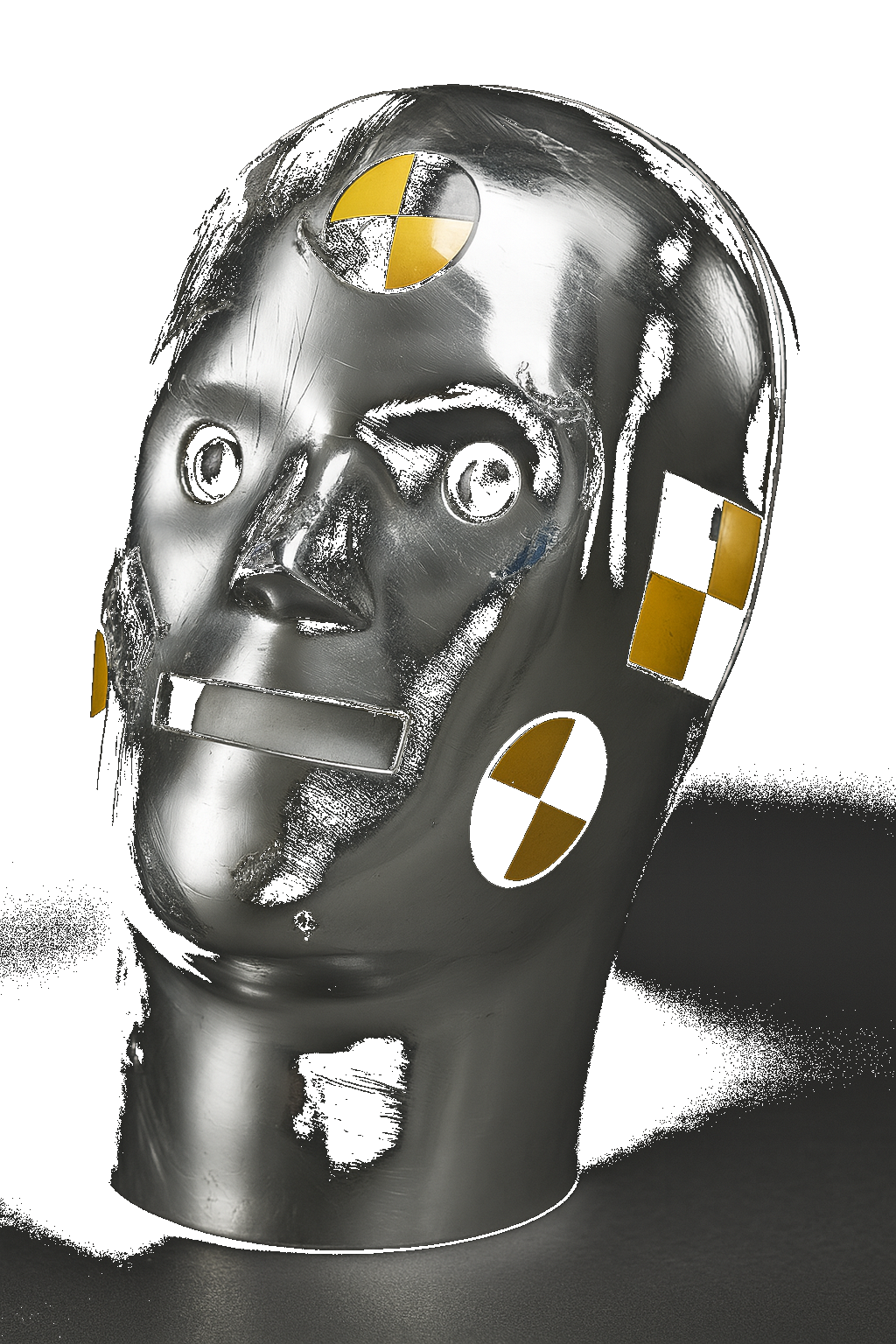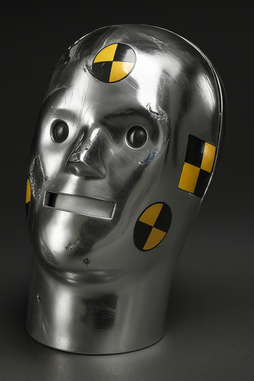 To meet the band’s request for chrome and holographic textures, I took a resourceful approach to 3D design. Using AI to generate a raw 3D base of the dummy head, I manually sculpted the final look in Photoshop, applying custom metallic textures and lighting to align with the EP's aesthetic. The result is a fusion of vintage safety-test imagery and modern digital craft.